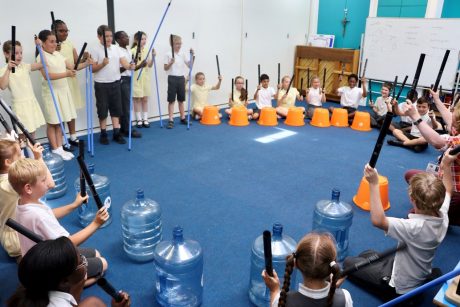 The school-based workshops provide children and young people with the opportunity to explore rhythm through using found sounds and recycled materials, from watercooler bottles, broomsticks and buckets to drainpipes and washing machine drums. Workshop leaders demonstrate how everyday waste can be transformed into a musical treasure trove.