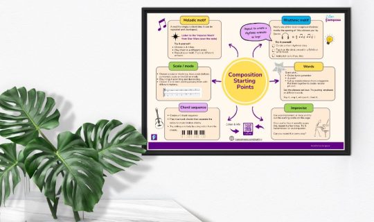 The ideal classroom visual aid to spark creativity – 6 starting points for students beginning to write their own music.